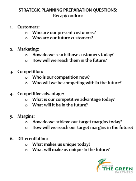 The Harvesters spend quality time together every year in a strategic planning session that results in a Playbook for our future actions. To make the most of our time together, we prepare ahead of time with summaries of performance compared to last year’s plan and in thinking about the future prior to the session. This is similar to the process we followed in my prior life in a public company. The Board of Directors and the senior executives worked on a macro level with these questions and the division and department managers worked on their sphere of influence with their teams.